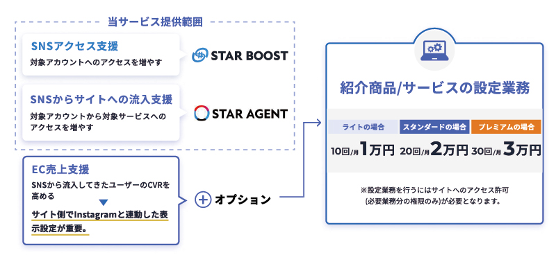 STAR AGENTをご利用のお客様は、インフルエンサー採用し放題サービスのSTAR BOOSTを無料で利用できます。